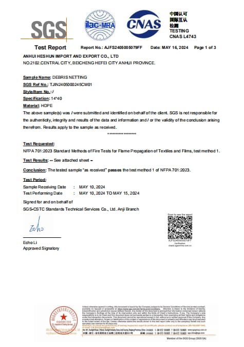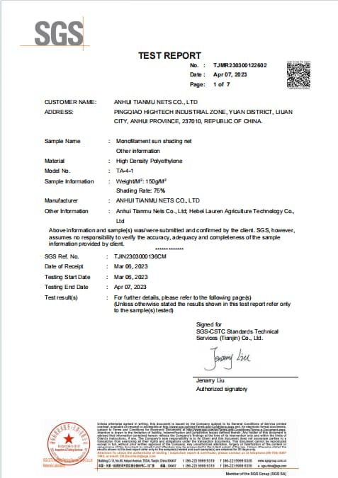 Our products are tested according to international quality standards to ensure reliable outdoor performance. Test reports cover key indicators such as UV resistance, tensile strength, shading rate, weight tolerance, and aging performance. Raw materials and finished products are both subject to inspection to guarantee consistency and durability. These test results verify that our shade products maintain stable quality under long-term sun exposure and various climate conditions.