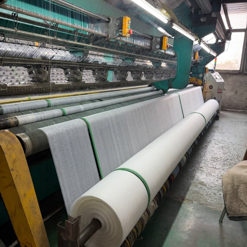 After extrusion, the yarns enter the high-speed knitting process. With more than 30 sets of advanced knitting machines, we produce various structures such as shade nets, shade sails, and privacy screens with different shading rates and fabric densities. The knitting process is strictly controlled to ensure uniform mesh structure, strong tensile strength, and stable dimensions, which are essential for outdoor wind resistance and durability.