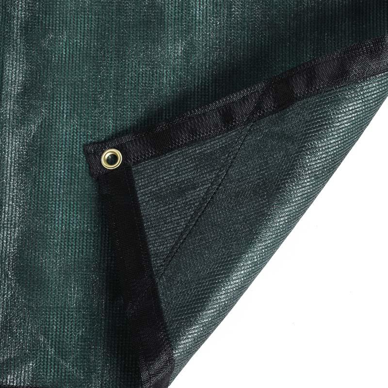 Shade mesh tarps shade fence tarp, construction, backyards and patios, and landscaping. Shade tarps can also be used for privacy, commonly seen on fences. shade capability is comprised of a tightly woven mesh fabric that is perfect for areas that need extra privacy. The mesh fence fabric is dense enough to keep onlookers away while still allowing the wind to pass through. Actual finish size of tarp is . This is due to the grommet and hemming process. Grommets are spaced every 24" along the perimeter of the mesh fence tarp.