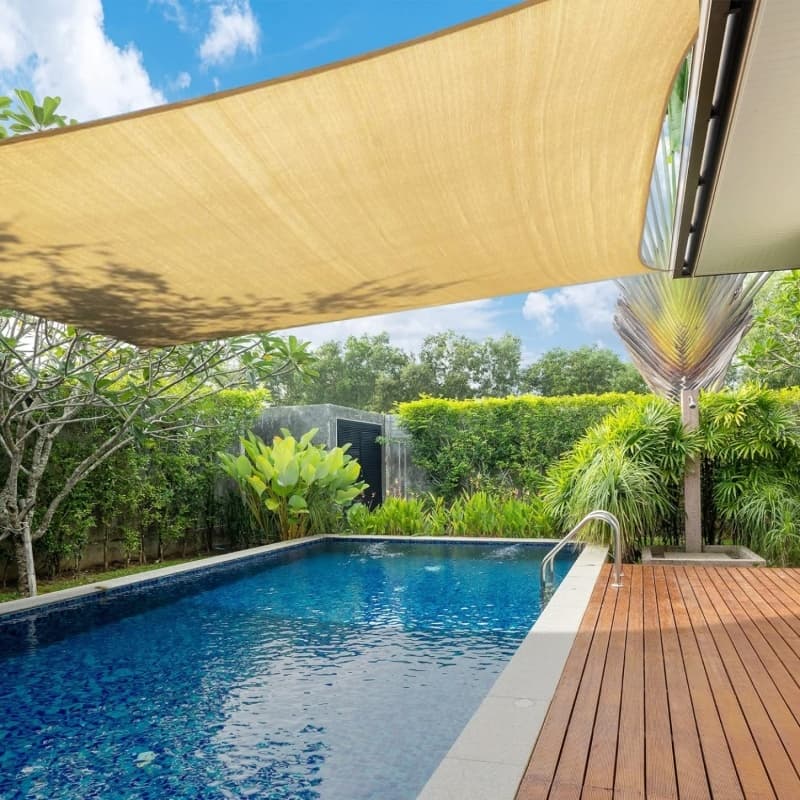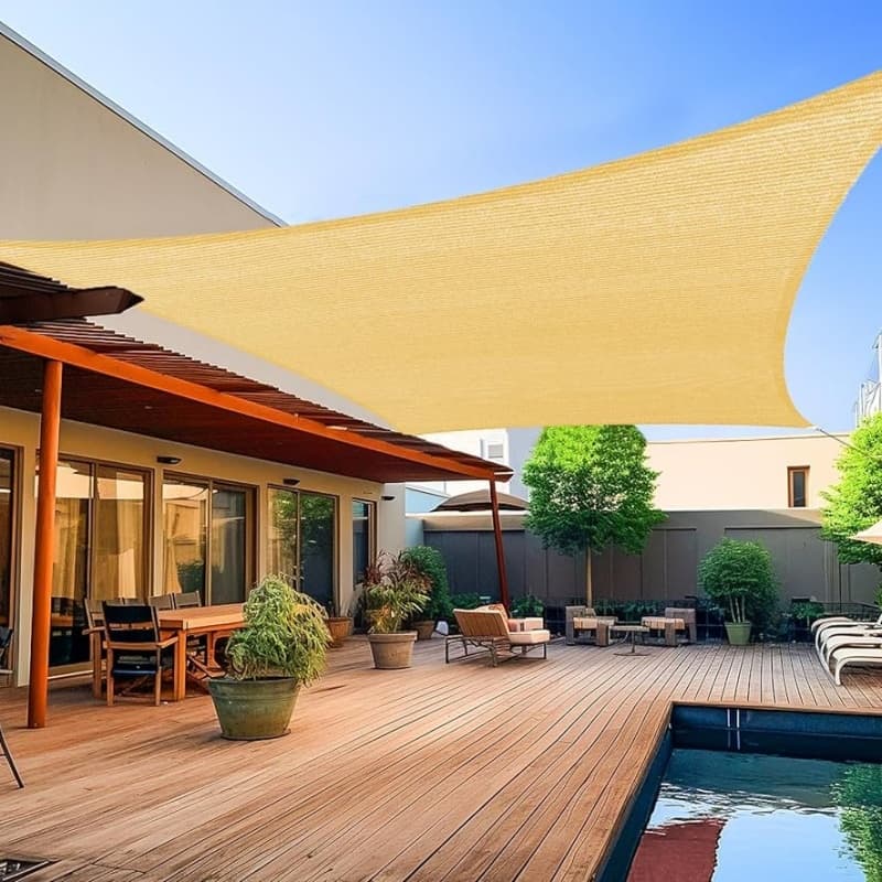 Shade sail is a versatile outdoor structure made from 100% HDPE, designed to provide protection from the sun, UV rays, and light rain. It is typically tensioned between anchor points (such as poles, buildings, or trees) to create a stylish and functional shaded area. Shade sails are commonly used in residential gardens, playgrounds, patios, commercial spaces, and public areas for both aesthetic and practical purposes. They come in various shapes (triangular, square, rectangular) and colors, allowing customization to suit different environments. Made from high-density polyethylene (HDPE) with UV, Shade Sails are weather-resistant and long-lasting.